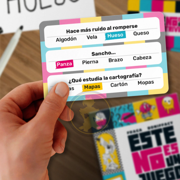 - Contiene 168 cartas (504 preguntas), 24 pizarras y 6 marcadores